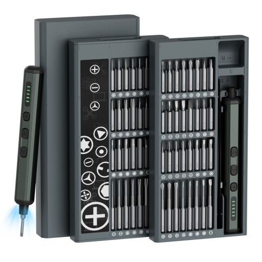Precyzyjny wkrętak elektryczny to niezbędne narzędzie dla entuzjastów majsterkowania! Prosta obsługa i kompaktowy system przechowywania pozwalają na wydajniejszą realizację zadań. 68 bitów nadaje się do różnych projektów naprawy elektroniki!
