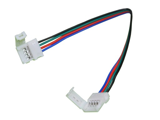 Złączka zaciskowa 4-punktowa podwójna typu klips, z przewodem o długości ok. 16 cm, do łączenia taśm LED 5050 RGB o szerokości 10 mm