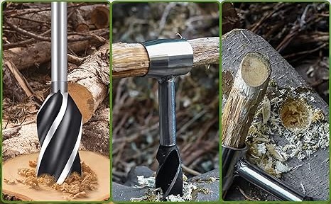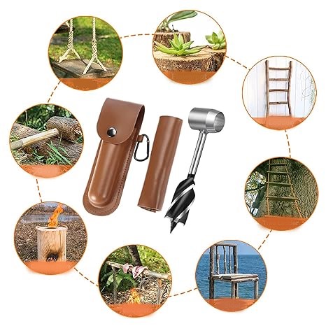 - Ręczne wiertło ślimakowe bushcraft idealnie nadaje się do budowy schronienia, projektów domowych, tworzenia otworów w kształcie kołków kabinowych i produkcji mebli, koni piłowanych, drewnianych młotków. Jest to idealne narzędzie do wszystkich aktywności na świeżym powietrzu, bushcraft, kemping, DIY i wiele innych.