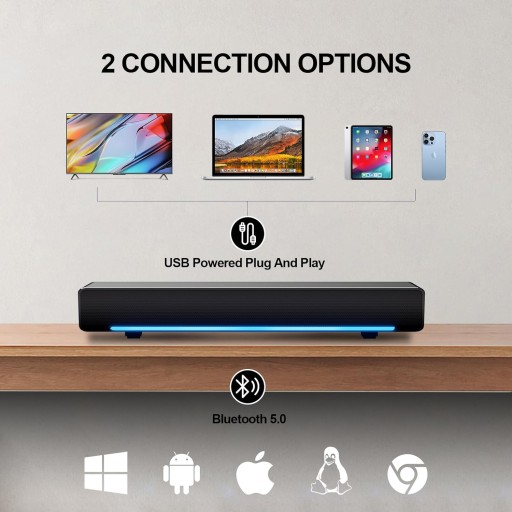 Stylowy i Kompaktowy Design: Smukła konstrukcja (32 x 6,4 x 6,8 cm) nie zajmuje dużo miejsca na biurku, eliminując bałagan kabli. Idealny do odtwarzania muzyki, filmów, gier, audiobooków czy konferencji online, dostosowując atmosferę w biurze, na imprezie i w domu.