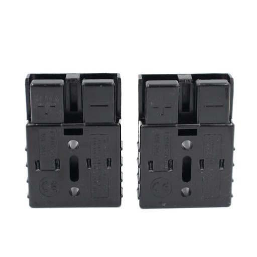 Dane techniczne: zasilanie: 600 V DC; pojemność: 50 amperów; Opakowanie zawiera 2 zestawy szybkozłączek do baterii