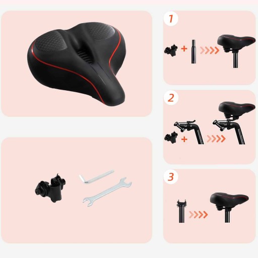 ✅Łatwe do zainstalowania. Pakiet zawiera poduszkę na siodełko rowerowe, narzędzia instalacyjne, instrukcję montażu (przed instalacją zeskanuj kod QR, aby obejrzeć film instalacyjny).