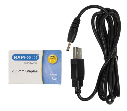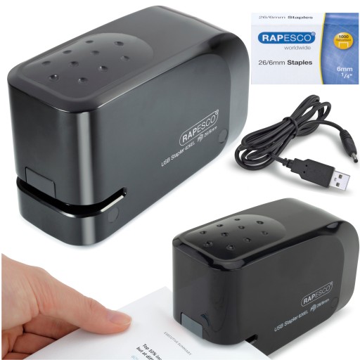 Automatyczny zszywacz Rapesco 626EL może być zasilany przez USB lub baterie, co umożliwia szybkie i wydajne zszywanie do 15 arkuszy papieru o gramaturze 80 g/m2. Zszywacz pół-pasmowy ma wytrzymałą konstrukcję z tworzywa ABS i mieści standardowe zszywki 26/6 mm. System ładowania z przodu ma łatwy dostęp za pomocą przycisku, z ukrytą głowicą zszywającą dla bezpieczeństwa i antypoślizgową gumową podstawą.