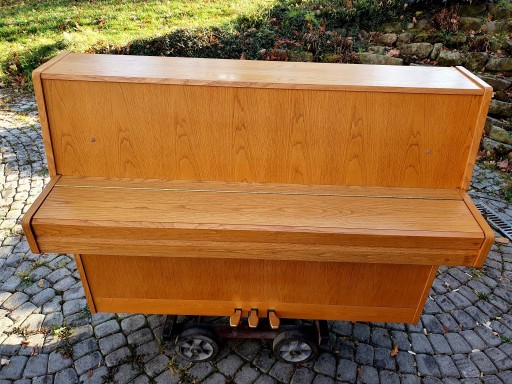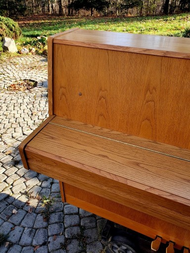 Pianino Samick model SU-108P, numer seryjny ILG00176 a zatem wyprodukowane w 1992 roku. Pianino wygląda jak wykonane z pięknego, jasnego, naturalnego drewna dębowego, które wizualnie znakomicie pasuje do nowoczesnego wystroju wnętrza np. w stylu loft, czy stylu skandynawskiego. Jest to fabryczne wykonanie - w naszej pracowni wykonaliśmy tylko drobne poprawki. Pianino bardzo młode, niewiele używane, stan podzespołów we wnetrzu - prawie jak w nowym instrumencie. Mechanizm pracuje bardzo sprawnie. Dźwięk czysty, ładny. Instrument przeszedł serwis, naprawy i wszystkie potrzebne regulacje w naszym warsztacie. Jest nastrojony i gotowy do gry.