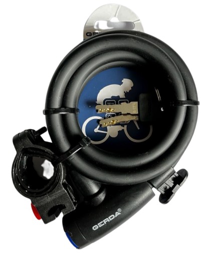 Pętla rowerowa z uchwytem transportowym – przydatna w podróży i w domu. Spirala spleciona o długości 180 cm daje możliwość spięcia dwóch rowerów oraz gwarantuje komfort przypinania w podróżowaniu. Zbudowana jest z cieńszych linek 12 mm. Pętla rowerowa FLEX 1800/12T pokryta jest osłoną PCV, która chroni rower przed porysowaniem. Zamek Gerda posiada specjalną zatyczkę otworu klucza, która chroni przed pyłem, piaskiem, błotem oraz wszelkimi innymi zabrudzeniami. Zamek jest powleczony bezpieczną powłoką z tworzywa sztucznego, które amortyzuje przypadkowe uderzenia. Do zestawu dołączony jest wygodny klucz symetryczny. Takie rozwiązanie umożliwia przypięcie do uchwytu transportowego – na ramie, kierownicy lub sztycy siodełka.
