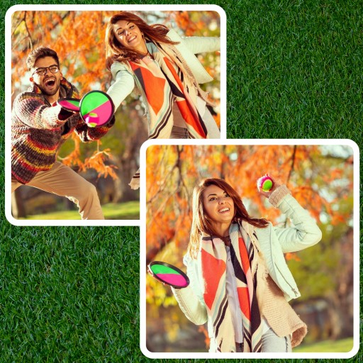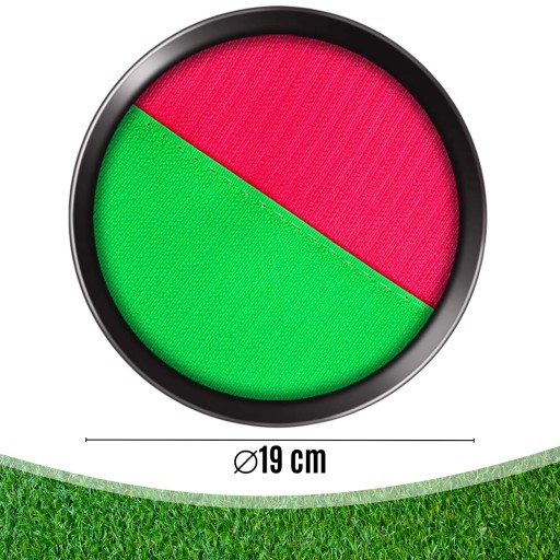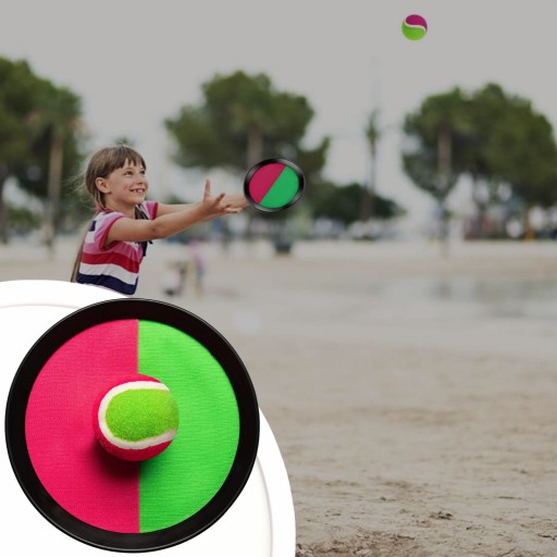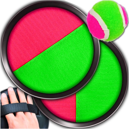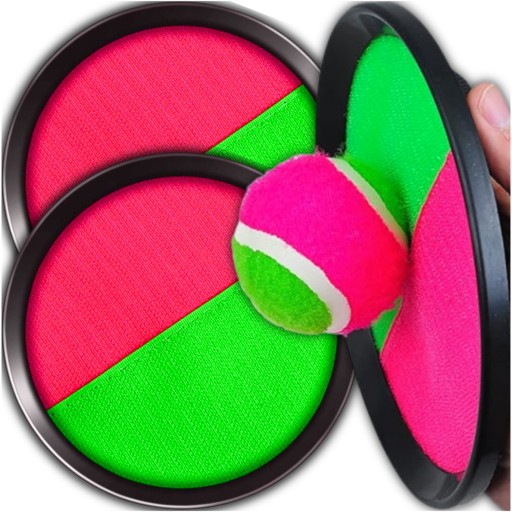 ✔️Złap i rzucaj✔️Gra polega na rzucaniu piłeczką tenisową do przeciwnika, który stara się złapać ją na paletkę z rzepami, starając się trafić w centralny punkt.
