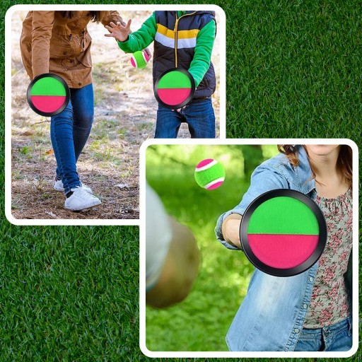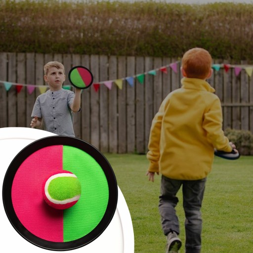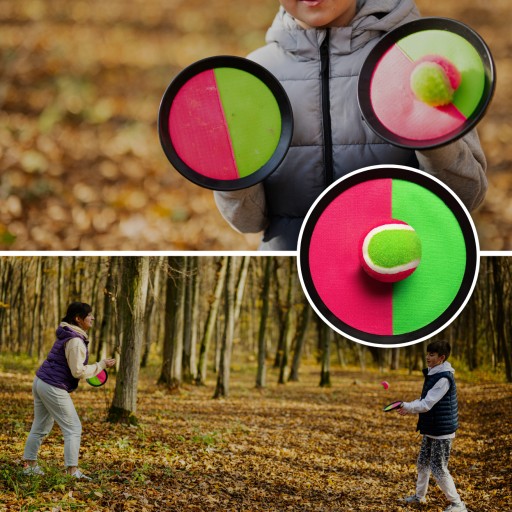 ✅Prosta zasada gry: Gracze rzucają piłeczką tenisową do przeciwnika, a ten próbuje złapać ją na paletkę z rzepami, najlepiej w centralnym punkcie. To prosty, ale emocjonujący sposób na stymulowanie zwinności i koordynacji ruchowej.