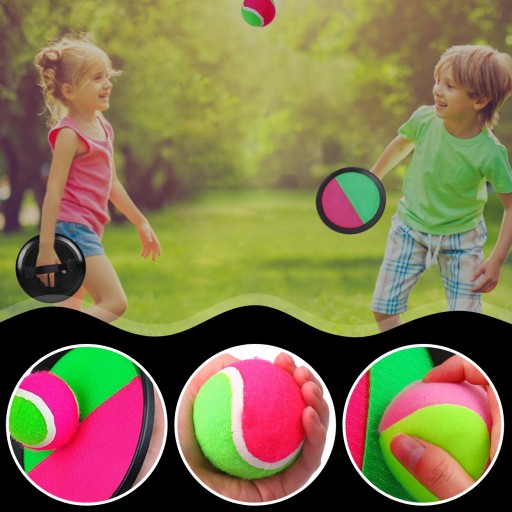 ✅Prosta zasada gry: Gracze rzucają piłeczką tenisową do przeciwnika, a ten próbuje złapać ją na paletkę z rzepami, najlepiej w centralnym punkcie. To prosty, ale emocjonujący sposób na stymulowanie zwinności i koordynacji ruchowej.