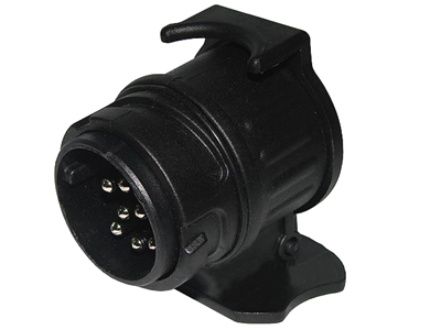 Adapter umożliwia przyczepy z wtyczką 7 pinową (polskiej) do gniazda 13 wtykowego (niemieckiego).