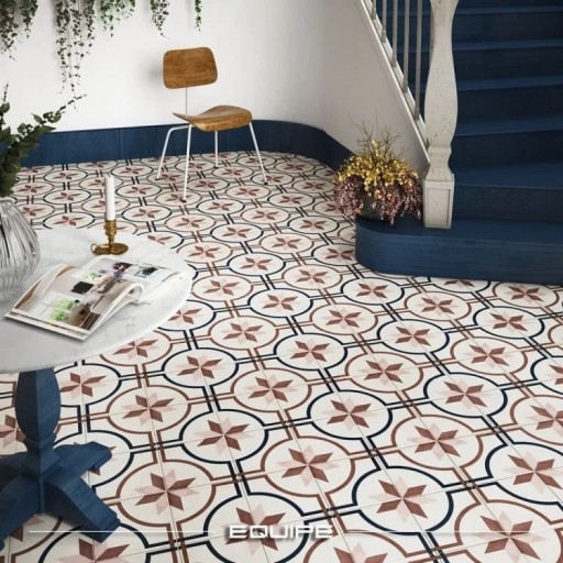 Prezentowana płytka przyciąga wzrok swoim geometrycznym wzorem i harmonijną paletą barw, w której dominują delikatne odcienie różu i szarości, uzupełnione kontrastującymi elementami w ciemniejszych tonach. Takie połączenie sprawia, że płytki Art Embassy Colour 20x20 doskonale wpisują się w różnorodne style aranżacyjne, od nowoczesnych i minimalistycznych, po bardziej eklektyczne i vintage.