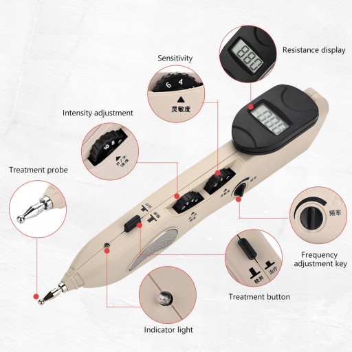 Urządzenie do terapii akupunkturą elektryczną jest wyposażone w cyfrowy wyświetlacz do lokalizacji akupunktury lub punktów spustowych. Zawiera skuteczną funkcję stymulacji przyciskiem do natychmiastowego leczenia akupunkturą elektryczną punktu lub obszaru natychmiast po jego wykryciu. Wyświetlacz cyfrowy pomaga użytkownikowi łatwo zlokalizować najdokładniejszą akupunkturę lub punkt spustowy, ponieważ liczba ta wzrasta wraz z obniżeniem oporu elektrycznego skóry (po osiągnięciu maksymalnej liczby wykrywany jest punkt akupunktury i może rozpocząć się elektroakutura). Samo leczenie akupunktury elektrycznej jeszcze nigdy nie było tak proste!