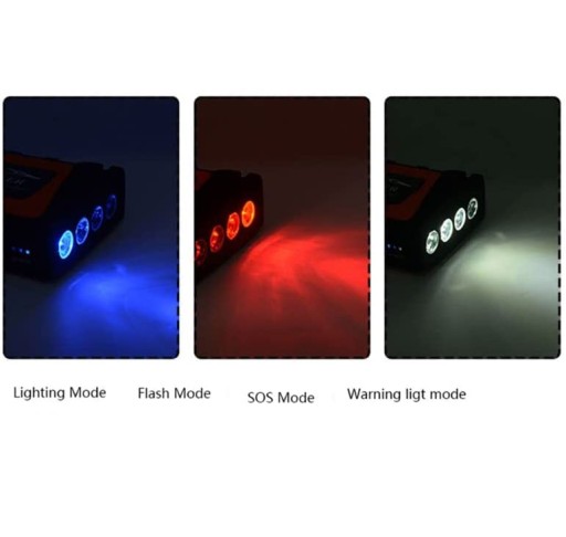 🚘4 diody LED z 4 trybami (normalny, SOS, stroboskop, wyłączone) do oświetlenia awaryjnego.