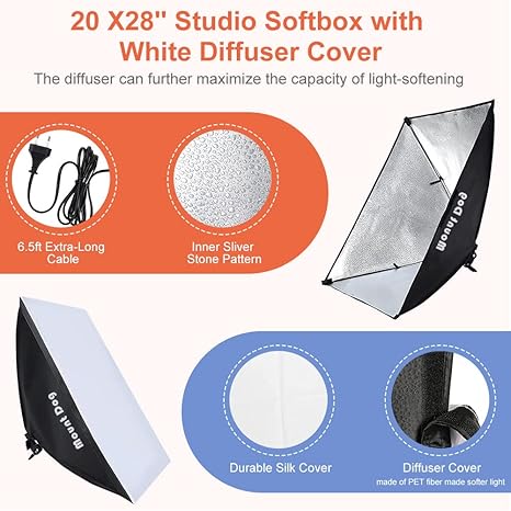 Zestaw oświetleniowy Softbox MOUNTDOG do fotografii Softbox Light Studio 2X20 X28 E27 95W 5500K Soft Box Light Profesjonalny sprzęt fotograficzny do sesji zdjęciowych Nagrywanie wideo Portrety