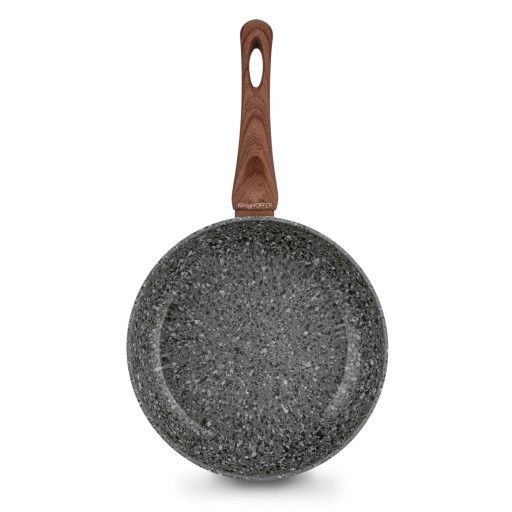Zestaw 3 patelni granitowych Konighoffer Geos 20, 24 i 28 cm jest energooszczędny. Sprawia to równomierne ogrzewanie i szybka absorpcja ciepła, które skracają czas smażenia. Powłoka granitowa MULTISTONE doskonale chroni patelnie przed uszkodzeniami i wysoką temperaturą. Jest trójwarstwowa i wyjątkowo twarda. Dzięki zastosowaniu cząstek granitu uzyskuje chropowatą powierzchnię jeszcze bardziej odporną na zadrapania, nawet do 10 000 cykli ścierania. Wyjątkowo wytrzymały korpus patelni wykonano z kutego na gorąco aluminium typu forged. Zyskujesz więc pewność bezpieczeństwa podczas gotowania, a przy tym naczynia na lata. Rączka wykonana w technologii soft touch nie wyślizguje się z rąk i pozwala np. na wygodne przenoszenie naczyń oraz ustawienie na stole podczas wspólnego posiłku. Uchwyty pokryte tym tworzywem się nie nagrzewają. Idealny zestaw patelni marmurowych MULTISTONE dla każdej rodziny oraz konsumentów ceniących sobie możliwość kompleksowej kontroli nad składem swojej diety. Sprawdzi się też jako praktyczny prezent. Produkt ma rekomendację Ewy Wachowicz. Jako ambasadorka marki Konighoffer, gorąco i z uśmiechem poleca go ona do domowego użytku. Razem z nim zdobędziesz twój przepis na dom. To jedna z najlepszych opcji w tej kategorii!