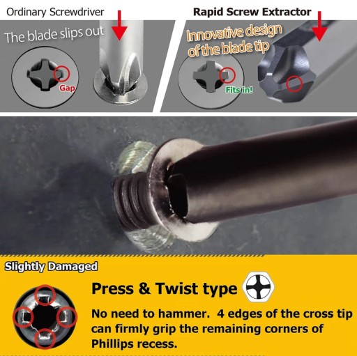 Profesjonalny zestaw wykrętaków do uszkodzonych śrub krzyżakowych Phillips