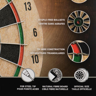 Zaprojektowana dla pasjonatów gry w darta, którzy poszukują tarczy zapewniającej duże wrażenia oraz trwałość. Regulaminowy rozmiar. Potrzebujesz emocji oraz trwałej tarczy i rzutek do gry w domu, aby się poczuć jak na zawodach? Ta tarcza z naturalnych włókien, w naturalnym i prostym stylu, jest stworzona dla Ciebie.