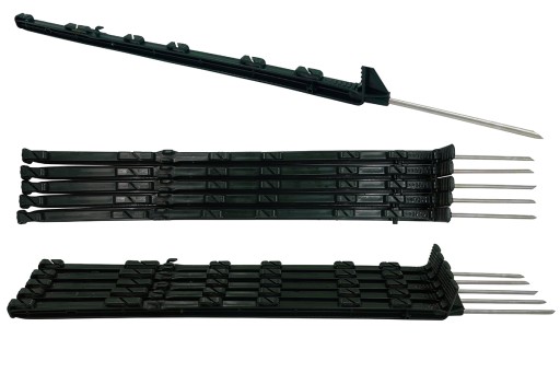 1️⃣ Paliki wbijamy w ziemię i rozstawiamy w odległości co około 4-5 metrów.