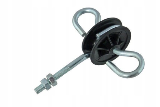 ➡️ Z jednej strony do kształtki przymocowuje się linię ogrodzenia elektrycznego z drugiej zaś strony zaczepia się sprężynę, bądź uchwyt zestawu bramowego.