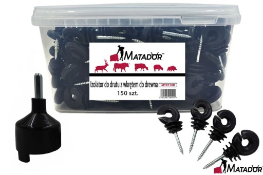 Izolatory Matador do drutu, plecionki, linki z wkrętem do drewna 150 szt + uchwyt i wiaderko