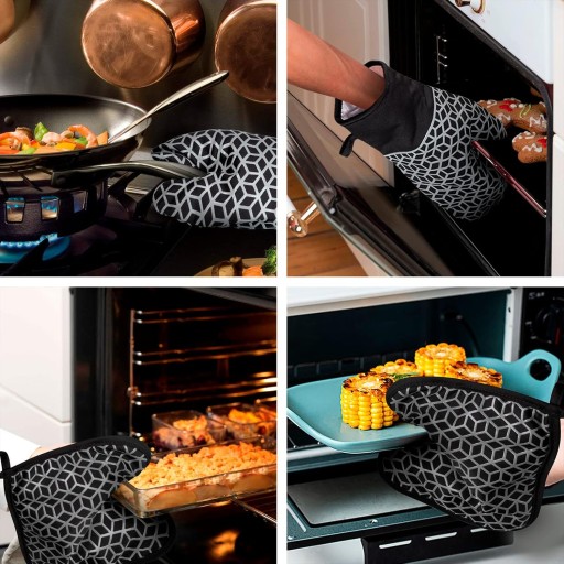 - Uniwersalny rozmiar - dzięki wewnętrznej powłoce z bawełny rękawiczki są przyjemnie puszyste i miękkie. Można je łatwo założyć i zdjąć. Rękawice do pieczenia można nosić uniwersalnie na lewej i prawej stronie.