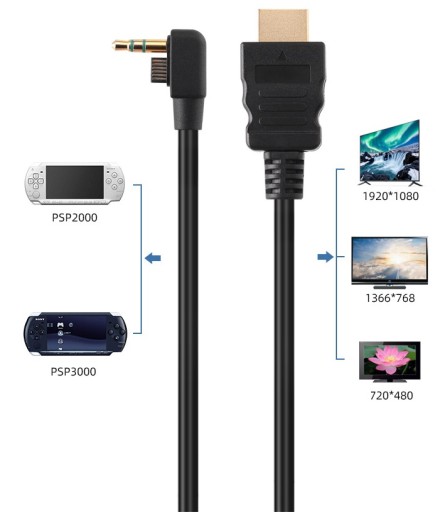 Kabel adapter HDMI do konsoli PSP 2000, 3000 (PlayStation Portable 2000, 3000) to urządzenie, które umożliwia podłączenie przenośnej konsoli PSP do telewizora lub monitora za pomocą złącza HDMI.