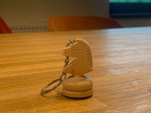 Drewniany brelok szachowy z metalowym zapięciem. Gadżet szachowy nie tylko dla najmłodszych. Brelok może posłużyć jako drobny upominek lub zawieszka do kluczy. Oferta dotyczy figury białego skoczka.