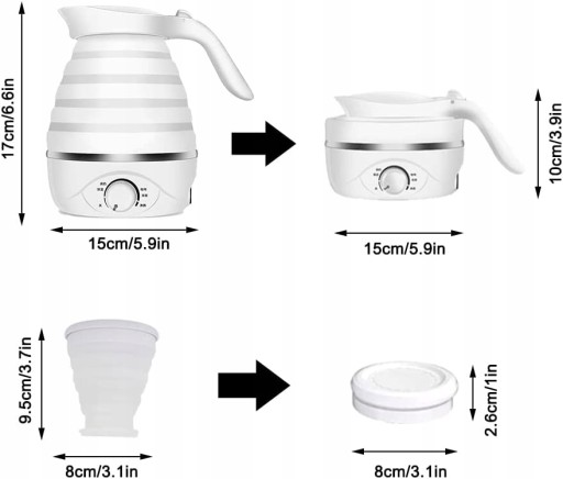СКЛАДНОЙ ЭЛЕКТРИЧЕСКИЙ ЧАЙНИК 2x КРУЖКИ 600ВТ 0,6Л