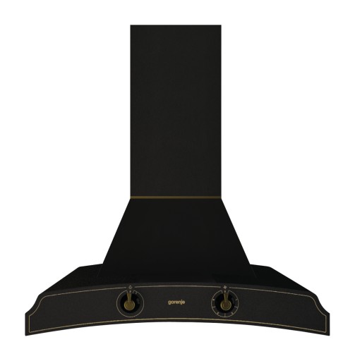 Wzór okapu w delikatnej kości słoniowej lub matowej czerni jest uzupełniony charakterystycznym uchwytem w kolorze starego złota. Tradycyjne pokrętła umożliwiają kontrolę nad okapem i jego funkcjami. Ozdobny uchwyt pasujący do projektu całej kolekcji doskonale uzupełnia wygląd okapu i podkreśla jego klasyczny charakter.