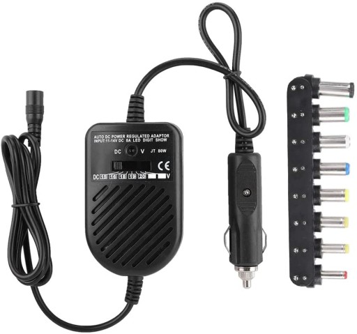 Uniwersalny zasilacz samochodowy do laptopa o maksymalnej mocy 80 W to urządzenie, dzięki któremu skorzystasz z laptopa w podróży, zasilając go z gniazda zapalniczki samochodowej. 8 wymiennych złączek, dopasowanych do większości modeli laptopów występujących na rynku oraz ich konstrukcja, zapewniają szeroką kompatybilność i bezpieczeństwo użytkowania. Dodatkowo, zasilacz posiada regulację napięcia, dzięki czemu można ustawić prąd odpowiedni dla konkretnego modelu którego używamy, a specyficzna konstrukcja końcówek zapobiega zmianom polaryzacji, co gwarantuje bezproblemową pracę urządzenia. Zasilacz posiada zabezpieczenie przeciw przeciążeniom oraz przeciw zwarciom.