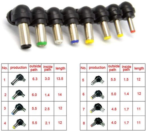 Jest to większość występujących na rynku końcówek, ale nie wszystkie, dlatego upewnij się, że Twój laptop ma jedną z wyżej wymienionych końcówek.