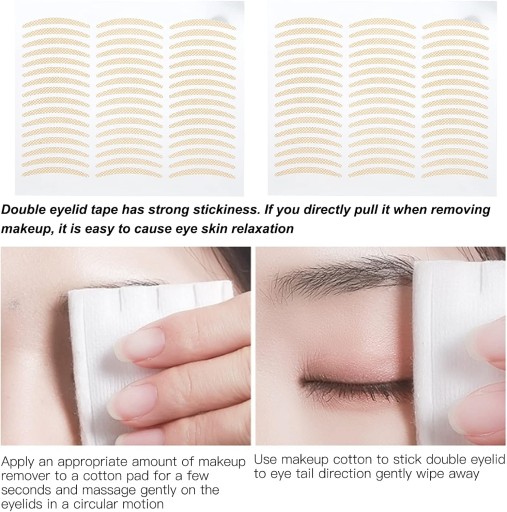 Łatwe w użyciu i wygodne. Dzięki nim podkleisz opadające powieki. Załamanie będzie wyraźniejsze lub przesunięte, co optycznie powiększa oczy. Tasiemka ma długość 2,5cm, a szerokość po środku wynosi około 3mm. Klej jest porządny, tasiemka dobrze trzyma się na powiece, nie przesuwa się, ale łatwo ją odkleić i poprawić, jeśli efekt nam się nie podoba