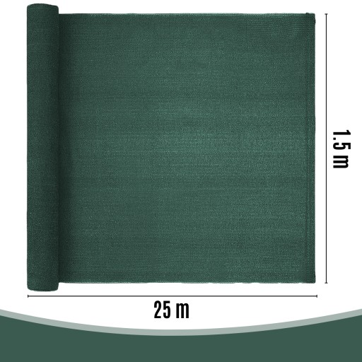 SIATKA CIENIUJĄCA MASKUJĄCA DO TARASU PŁOTU NA BALKON OGRÓD 1,5M X 25M 60G 60% + 100 OPASEK ZACISKOWYCH