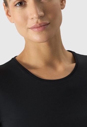 - Wykonana w 95% z miękkiej bawełny z dodatkiem 5% elastanu, co sprawia, że jest lekko rozciągliwa. Okrągły dekolt wykończony lekkim ribowaniem.
