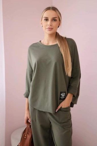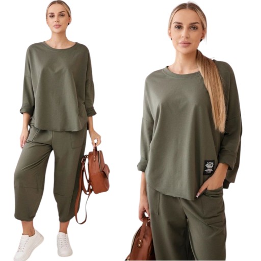 to połączenie elegancji i wygody, które idealnie pasuje do wielu okazji. Ta tkanina jest nie tylko miękka i przyjemna w dotyku, ale także pięknie się prezentuje. Bluza to doskonały element garderoby zarówno na co dzień, jak i na specjalne okazje. Możesz nosić ją solo lub zestawić z inną częścią garderoby, tworząc niezwykle stylowy outfit. Spodnie to doskonałe uzupełnienie kompletu. Ich luźny krój pozwala na swobodę ruchów, co sprawia, że są one nie tylko stylowe, ale także bardzo wygodne.