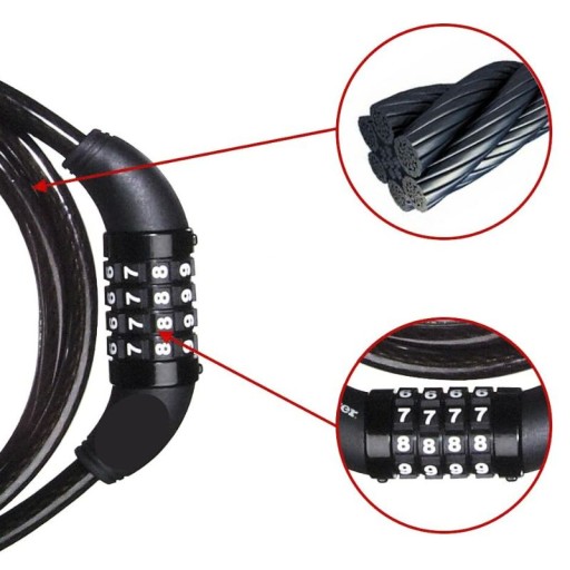 ВЕЛОСИПЕДНЫЙ ЗАМОК ВЕЛОСИПЕДНЫЙ ЗАМОК ПРОЧНЫЙ КАБЕЛЬ Код комбинации 110см