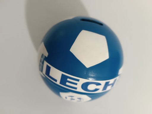 Ceramiczna skarbonka w kształcie piłki nożnej w barwach klubu. Idealna dla fana Lecha . Skarbonka nie posiada otworu do wyciągnięcia zawartości.
