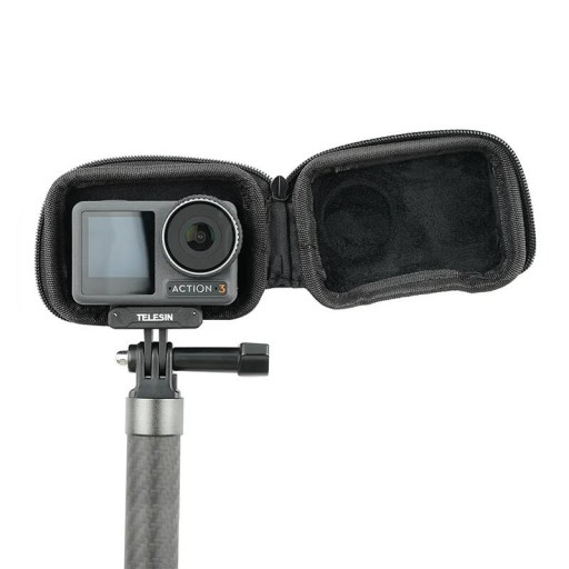 Producent Telesin Model OA-BAG-002 Wymiary 101 x 70 x 42,5 mm Waga 36,8 g Materiał EVA, PU, welur Kompatybilność DJI Action 4/3