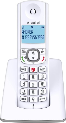 Alcatel F530 - bezprzewodowy telefon z rozszerzoną blokadą połączeń, zestaw głośnomówiący, duży ekran z podświetleniem, dzwonki VIP, 10 melodii połączeń, BIAŁY