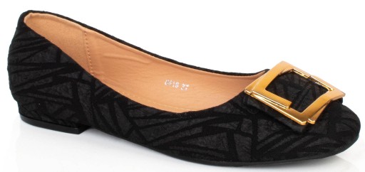 8299 CZARNE BALERINKI MATERIAŁOWE ZŁOTA OZDOBA 39