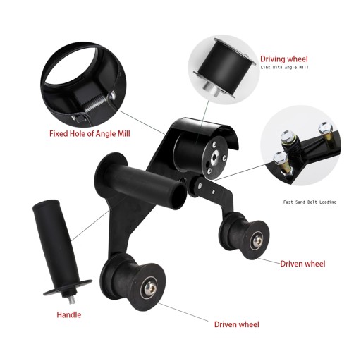 Jest to profesjonalny adapter do taśmy szlifierskiej szlifierki. Możesz samodzielnie zamienić swoją szlifierkę kątową w szlifierkę taśmową. Jest łatwy w instalacji i obsłudze. Jest to doskonałe narzędzie do szlifierki taśmowej.