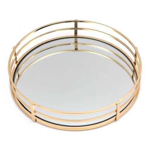 ✅ Okrągła, dekoracyjna taca wykonana z metalu i lustra.