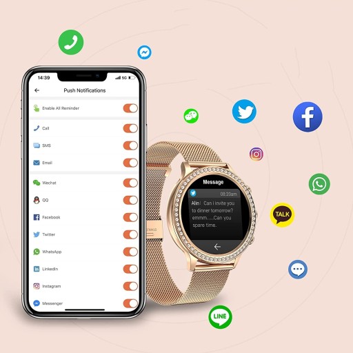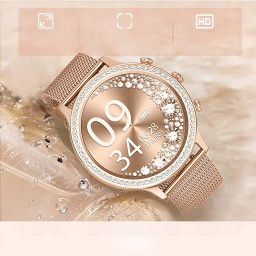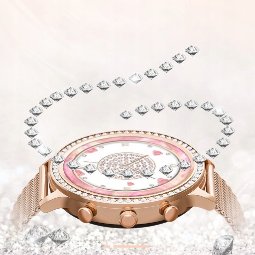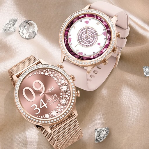 - Nowo stworzona seria romantycznych diamentach, damski smartwatch wykorzystuje 1,32-calowy szklany ekran o wysokiej twardości i wysokiej rozdzielczości , aby zapewnić wyraźniejsze wrażenia wizualne.