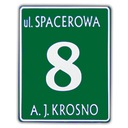 Aluminiowa tablica posesyjna (tłoczona, napisy wypukłe) wykonana z lakierowanej proszkowo (zabezpieczonej) blachy aluminiowej 0,8 mm. Tablica w dowolnym (z dostępnych) kolorze tła oraz z indywidualnym adresem.