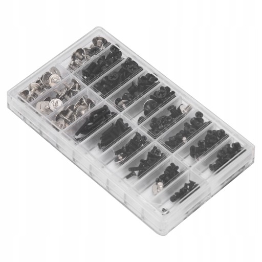 Dane techniczne: M2 x 3 czarne, M2 x 4 czarne, M2 x 5 czarne, M2 x 6 czarne, M2 x 8 czarne, M2 x 10 czarne, M2 x 2 niklowane, M2 x 3 niklowane, M2,5 x 4 niklowane powłoka, M3 x 4 niklowana, M2,5 x 4 czarna, M2,5 x 5 czarna, M2,5 x 6 czarna, M2,5 x 8 czarna, M3 x 4 czarna, M3 x 5 czarna, M3 x 6 czarna , M3 x 8 czarne, po 20 sztuk każdego typu