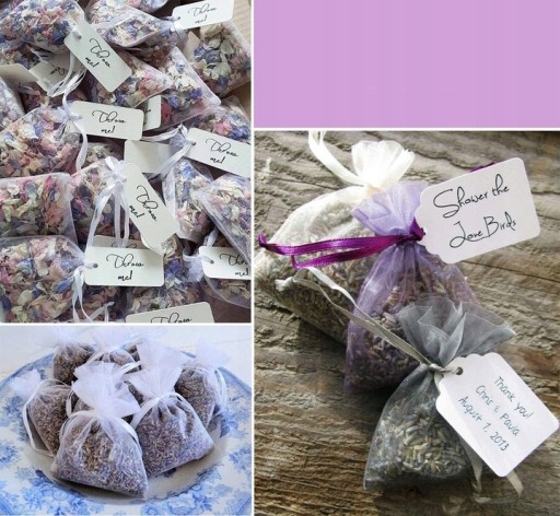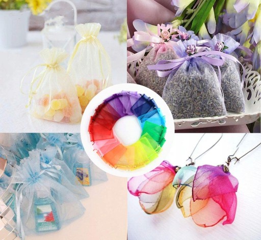 - Jasne kolory, idealne na przysługę weselną, imprezę, festiwal, opakowanie na biżuterię, kosmetyki, saszetki i opakowania na prezenty.