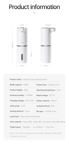 1. Nasz dozownik do mydła nadaje się do różnych rodzajów dezynfekcji rąk na rynku. Pieniące odkażacz do rąk można stosować bezpośrednio; Jeśli używasz zwykłego mydła, musimy dodać od 3 do 8 razy więcej wody, aby go rozcieńczyć, ponieważ inne mydła mają różne stężenia. Jeśli masz niewielką ilość piany, powinieneś dodać więcej wody;