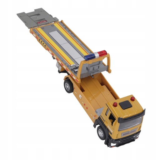 3. LEKKIE EFEKTY DŹWIĘKOWE: model przyczepy z płaską platformą ze stopu obsługuje naciśnięcie przycisku, aby dotknąć efektów dźwiękowych i świetlnych, siły wstecznej tylnego koła.
