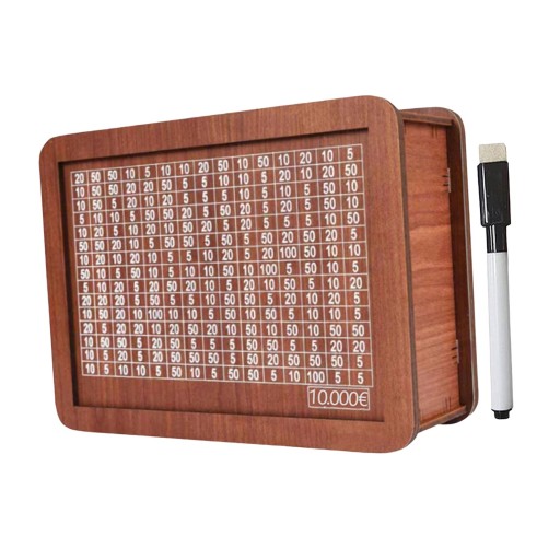 [Materiał]: Kompaktowa skarbonka zbudowana jest z materiałów drewnianych, dzięki czemu oszczędza miejsce, jest przenośna i lekka.
