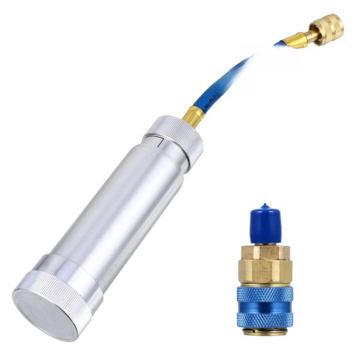 ✅Ten produkt to rurka do napełniania czystym ciekłym czynnikiem chłodniczym. Zbiornik oleju można odkręcić i wlać olej chłodniczy do klimatyzacji samochodowej. Nadaje się do napełniania układu chłodniczego klimatyzacji samochodowej.