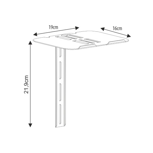 Półka w zestawie posiada dwa uchwyty umożliwiające dwa sposoby montażu. Krótki uchwyt służy do przymocowania półki do ściany, będzie to dobre rozwiązanie do telewizorów zamontowanych na uchwycie bez możliwości regulacji i obracania odbiornikiem. Drugi długi uchwyt umożliwia montaż półki bezpośrednio do telewizora za pomocą wolnych otworów VESA. Dzięki takiemu rozwiązaniu półka będzie "chodzić" razem z TV zamocowanym na uchwycie obrotowym.